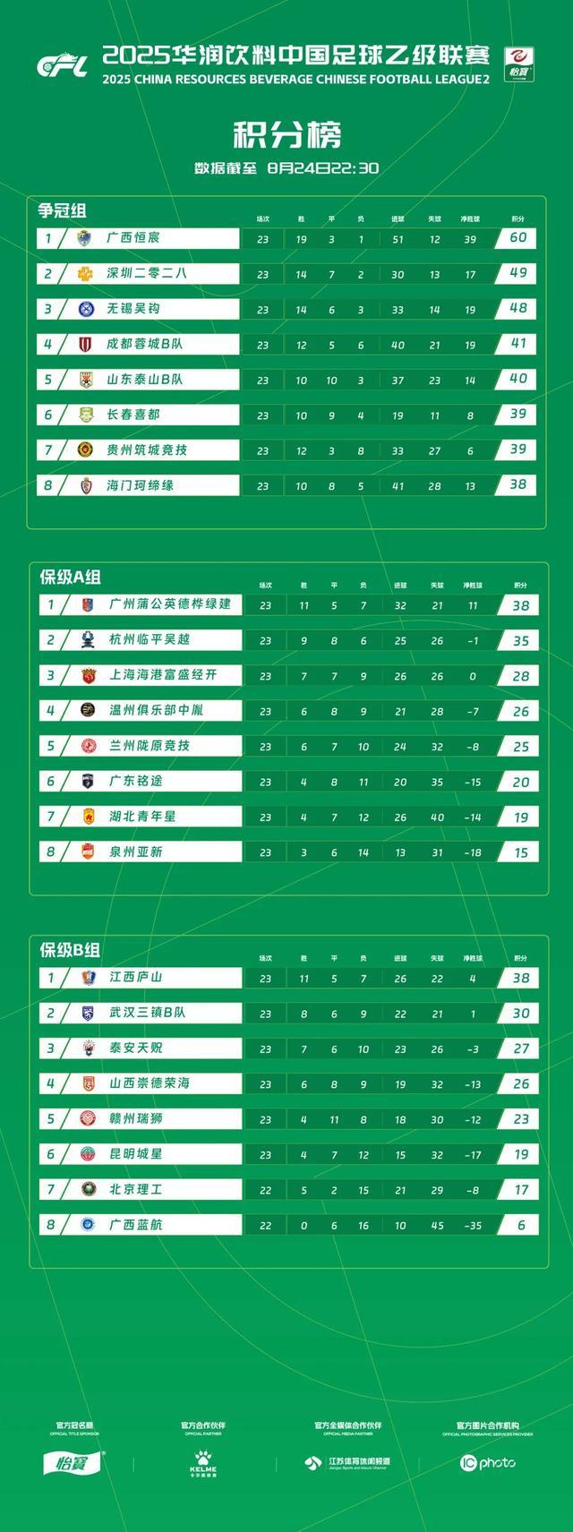 在赢下这场比赛之后,广西恒宸积分达到了60分,领先第二名深圳二零二八达到了11分,领先第三名无锡吴钩达到了12分,领先具有冲甲资格的第四顺位长春喜都更是达到了21分。目前来看,广西恒宸晋级中甲只是时间问题。